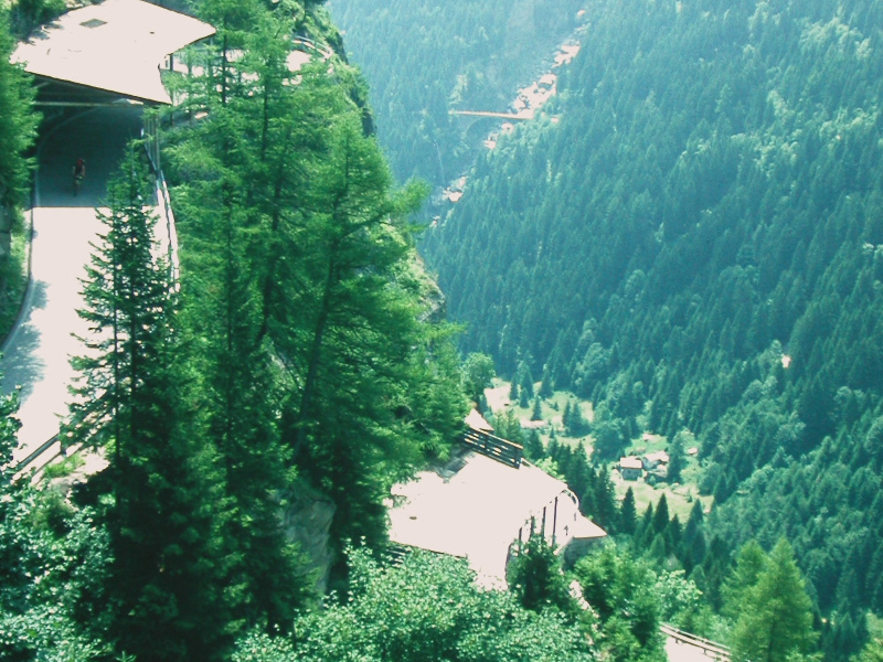 Photo 2 / 3 : Etroits lacets sur le versant sud du col du Slpügen