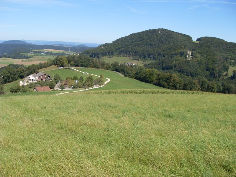 Photo 1 / 2 : Engelsrüti et le col d'Eggflue, avec la ruine de Homburg vers la droite