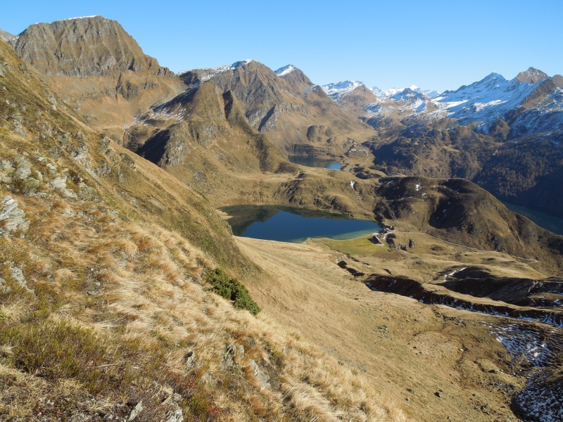 Photo 2 / 5 : View from Bassa della Fontana del Bò over Val Piora with the Tom and Cadagno lakes; on the horizon the Rheinwalhorn distinguishes itself behind the Pizzo Colombe, between Passo delle Colombe and Passo del Sole